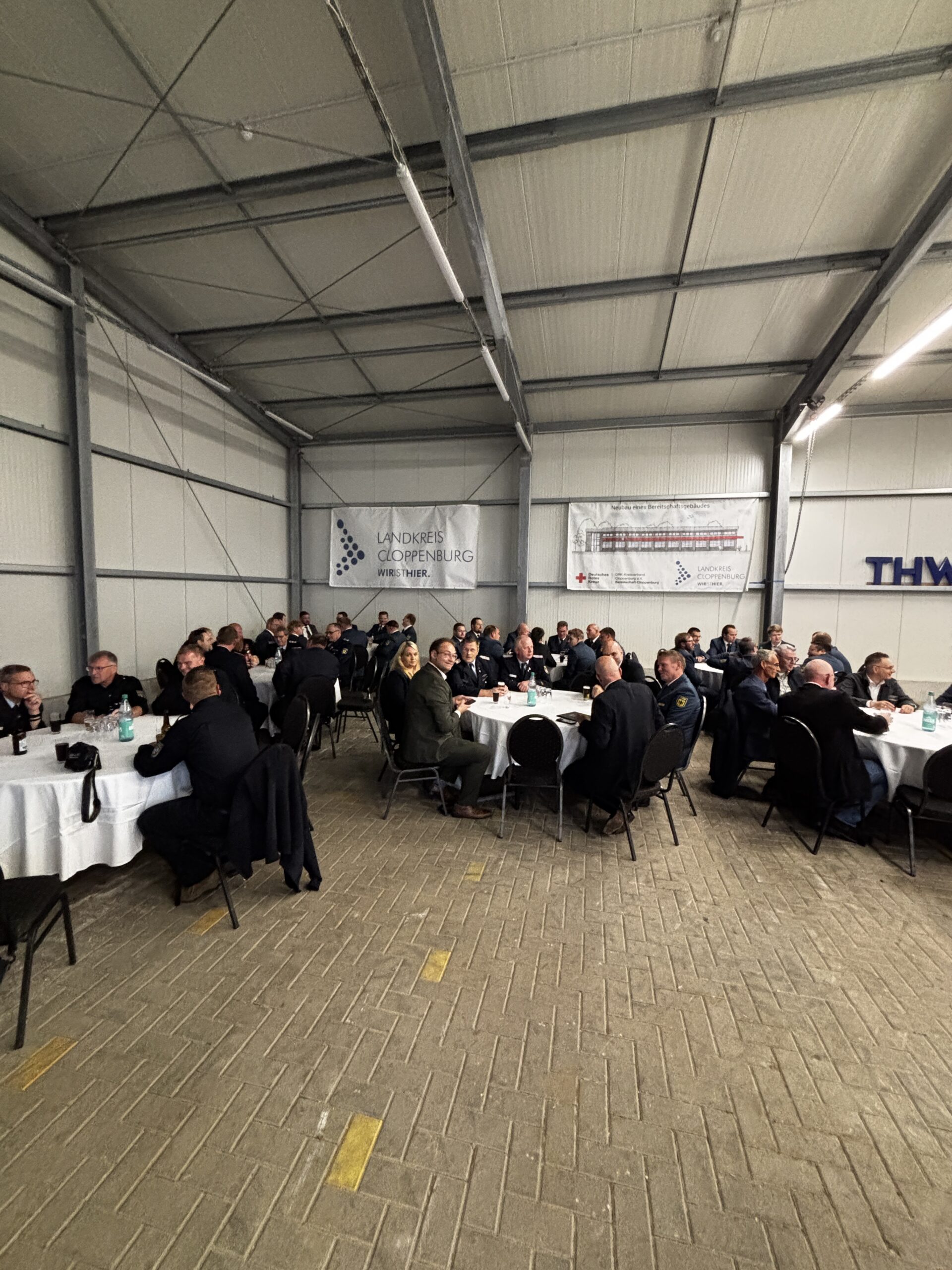 In einer Feierstunde überreichten Landrat Johann Wimberg und der Landtagsabgeordnete Stephan Christ die Auszeichnung an Einsatzkräfte der Technischen Einsatzleitung (TEL), des Technischen Hilfswerks (THW), der Fachgruppe ELW 2/ Fernmeldezug sowie an Mitarbeiterinnen und Mitarbeiter des Landkreises Cloppenburg. Die Veranstaltung fand in den Räumen des THW Cloppenburg statt. Weitere Helferinnen und Helfer von Feuerwehren, DRK, DLRG und anderen Hilfsorganisationen hatten die Ehrennadel bereits zuvor in dezentralen Veranstaltungen erhalten.