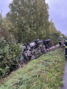Die Freiwilligen Feuerwehren aus Westerstede, Halsbek und Hollwege brauchten den Fahrer nicht mehr auf dem Fahrzeug befreien. Er konnte den LKW selbstständig verlassen.