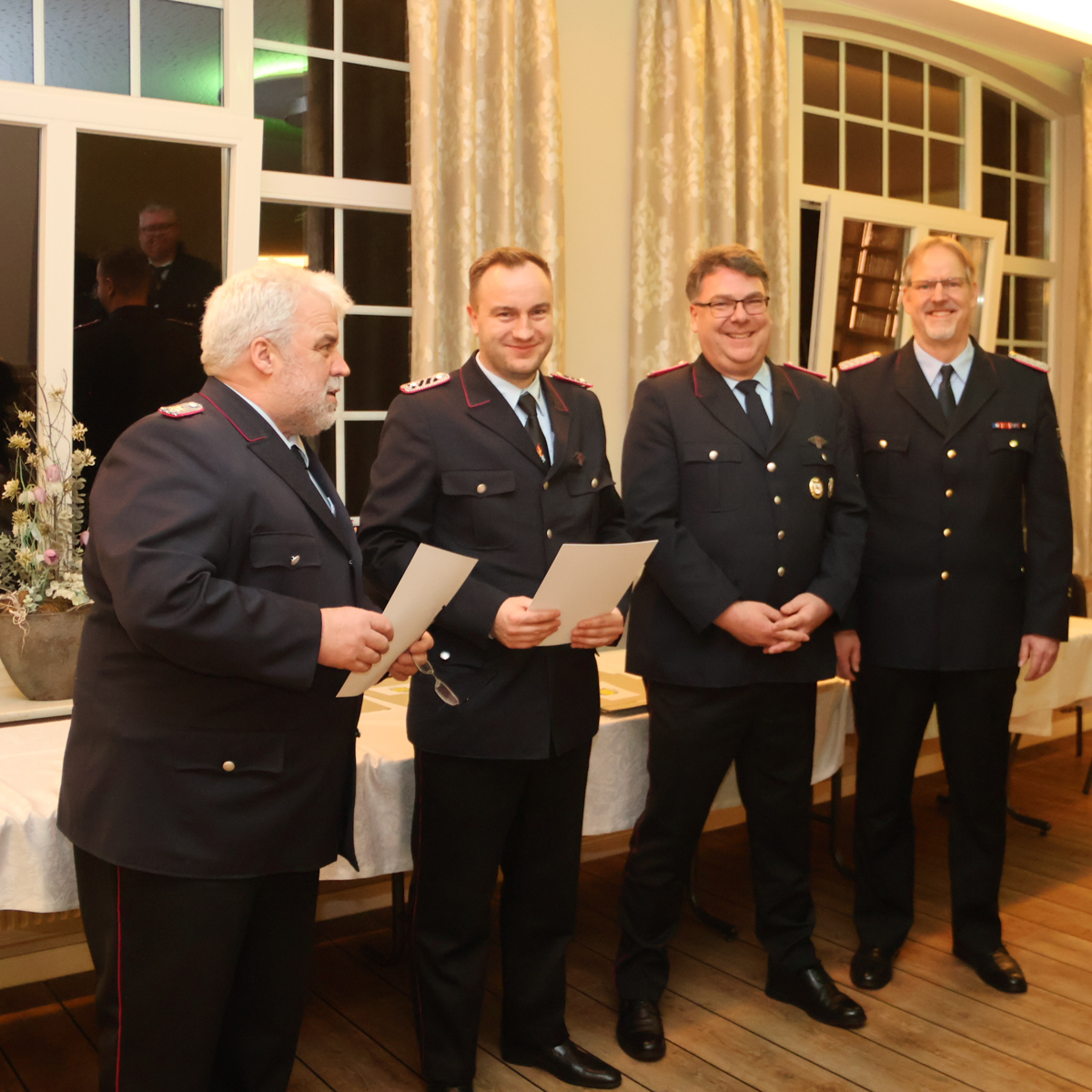 Im Anschluss standen dann diverse Wahlen an. Hierbei wurden folgende Kameradinnen und Kameraden gewählt: Torsten Tönjes zum Zugführer; Manuel Vogt, Arne Müller und Nils Reudel zum Gruppenführer; Mirko Frühling zum Pressewart; Niklas Barghop zum Schlauch- und Wasserstellenwart; Mathias Tönjes zum Funkwart; Helena Seemann zur Brandschutzerziehungsbeauftragtin; Lars Barghop zum Gerätewart; Sven Kathmann-Blohm zum Atemschutzgerätewart; Thorsten Seemann zum Sicherheitsbeauftragten; Gerwin Woldering zum Zeugwart.