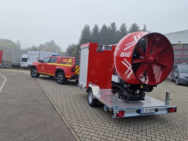 LK Oldenburg – Die Kreisfeuerwehr Oldenburg hat ihre technische Ausstattung um ein leistungsstarkes neues Einsatzmittel erweitert: einen modernen mobilen Großlüfter der Firma BIG, beschafft über die Firma Neumann.